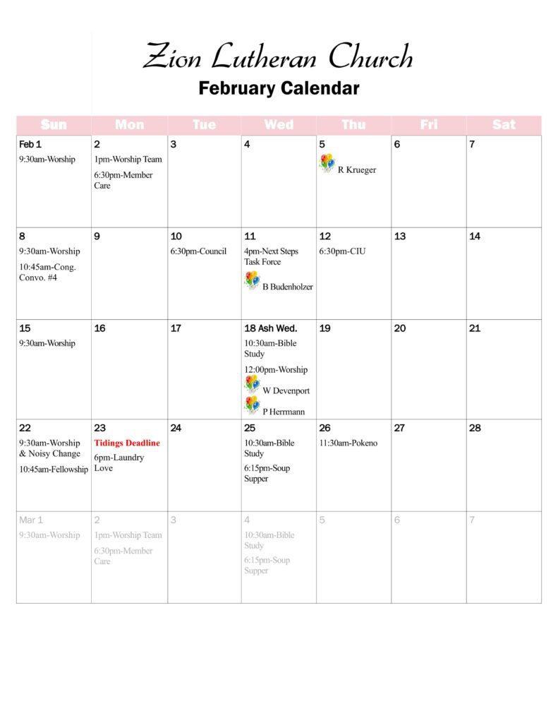 2026-February-Tidings-websiteDownload Highlights: Pastor’s Message February Birthdays Fourth Congregational Conversation on February 8th Ash Wednesday Worship Bible Studies & Soup Suppers Sign up for Directory Photos: http://ucdir.com February Food Pantry Collection Goal=Canned Soup